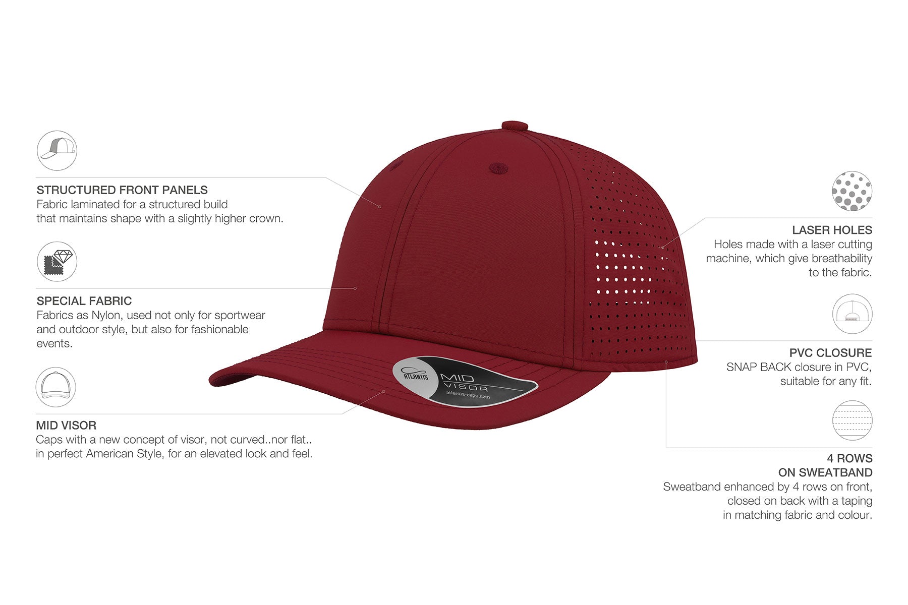 - Sweatband: 100% polyester mesh