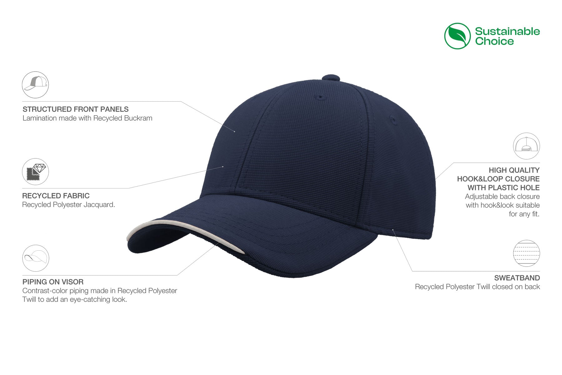- Sweatband: R-pet - 100% recycled polyester