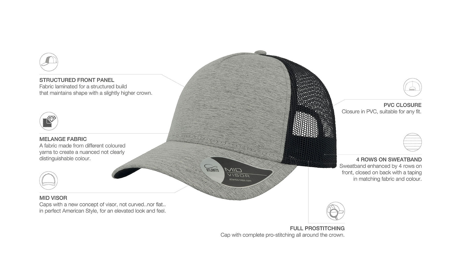 - Side&back: 100% polyester mesh - underbill: 100% chino cotton twill